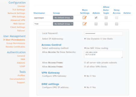 - Leave all other settings default, however this depends on what you configured when you deployed the OpenVPN appliance initially. My settings are below: