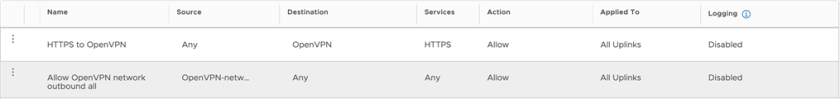 | 3 | Allow the OpenVPN-network outbound access to any destination | OpenVPN-network | Any | Any | Allow |