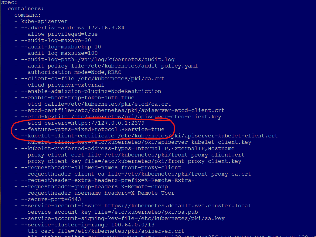 Go to the line spec.containers.command.kubeapiserver. You’ll see something like the following: