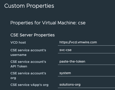 The last value is very important, it must by set to the tenant organization that will run the CSE appliance, in our case it is the “solutions-org” org.