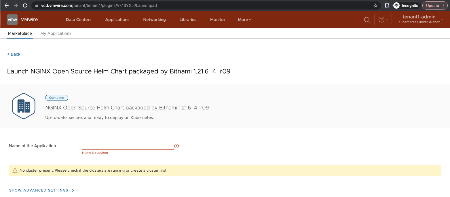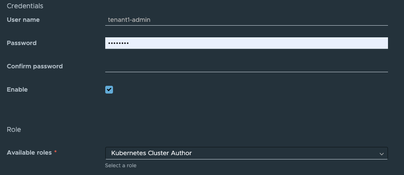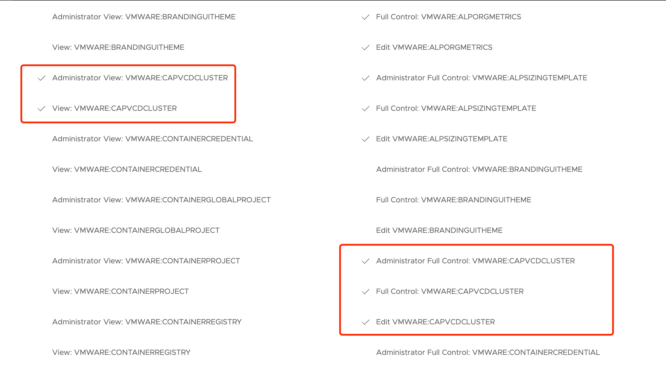 Ensure that the user that is logged into a tenant organization has the correct rights to deploy a TKG cluster. This user must have at a minimum the rights in the Kubernetes Cluster Author Global Role.