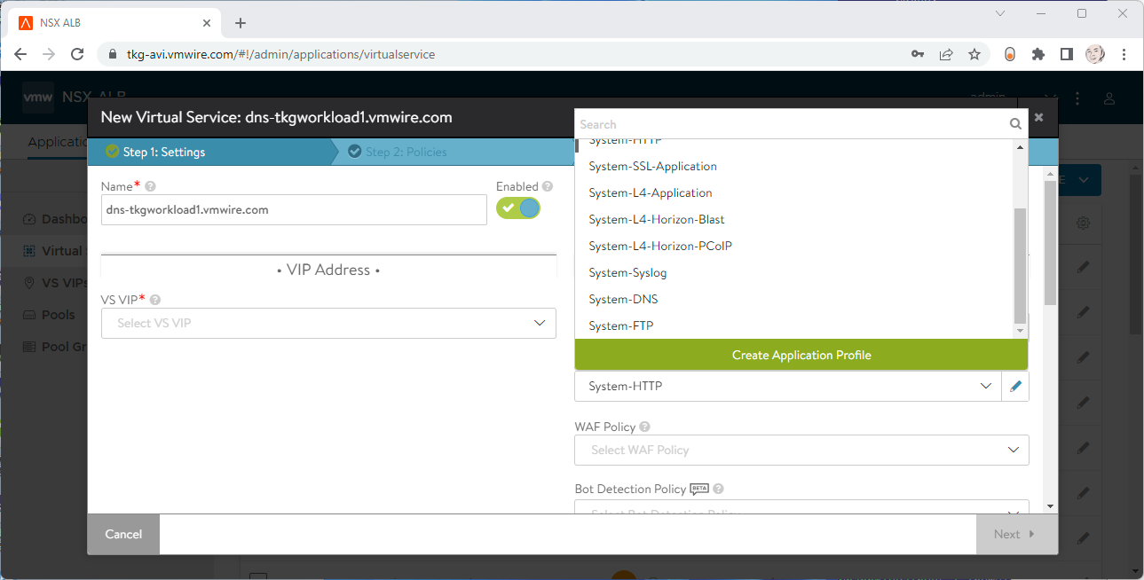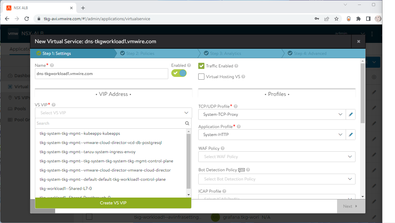 aviinfrasetting.ako.vmware.com/name: "aviinfrasetting-tkg-wkld-trf”