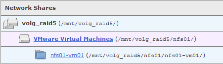 Again, for reference this nfs01-vm01 NFS share for use by VMware vSphere hosts has a path of /mnt/volg_raid5/nfs01/nfs01-vm01/.