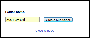 Now that we have created a new Volume for CIFS, we can now create a Sub-folder in which we can make a Share. I’m going with a 1:1 allocation of Volume to Sub-folder in my lab, so the naming conventions reflect this.
