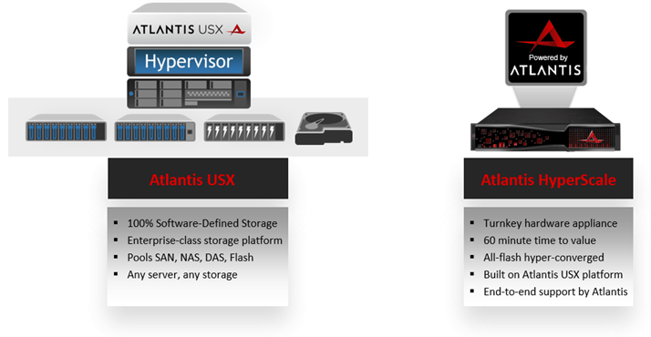 HyperScale comes pre-installed by Atlantis Channel Partners. HyperScale runs exactly the same software as USX, however HyperScale is installed automatically from USB key by the Channel Partner. When it is delivered to your datacenter, it is a simple 5 step process to get the HyperScale appliance ready to use.