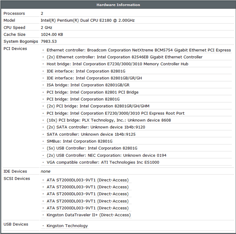 1 x Brocade 2340 Single Port 2Gb Fibre Channel PCI-X Adapter |