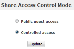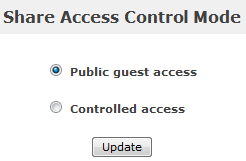 - Now scroll to the bottom of the page and click on the “RW” radio button underneath the NFS column, and then click on Update.