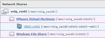 Again, for reference this nfs01-vm01 NFS share for use by VMware vSphere hosts has a path of /mnt/volg_raid5/nfs01/nfs01-vm01/.