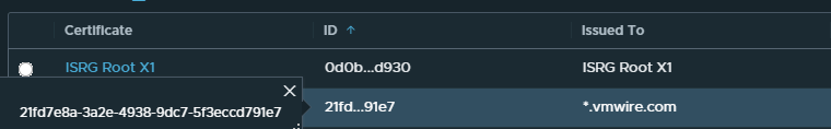You’ll need the certificate ID for the certificate star-vmwire-com to use to update the NSX-T Manager certificate.