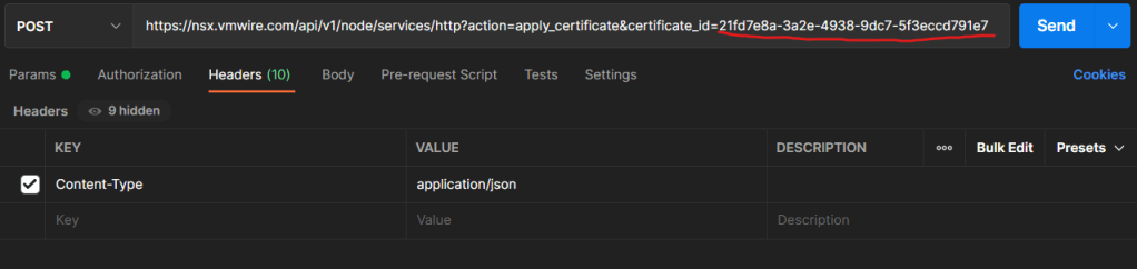 POST https://nsx.vmwire.com/api/v1/node/services/http?action=apply_certificate&certificate_id=21fd7e8a-3a2e-4938-9dc7-5f3eccd791e7
